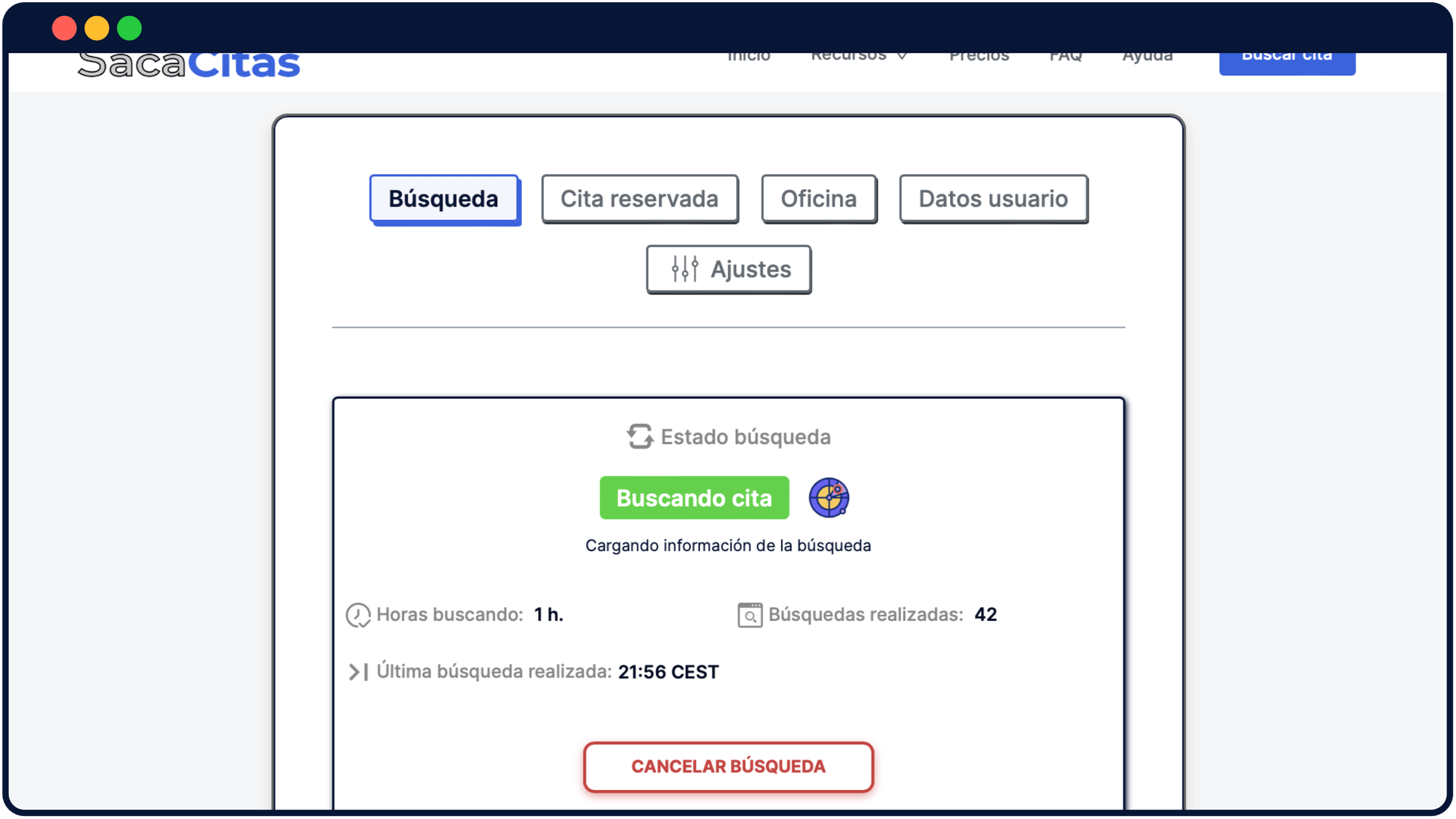 Accede a tu perfil personal o link privado de búsqueda. Desde esta sección podrás comprobar el estado de búsqueda de la cita, modificar las fechas de búsqueda y realizar otros ajustes. En caso de que se reserve la cita toda la información aparecerá en tu perfil.